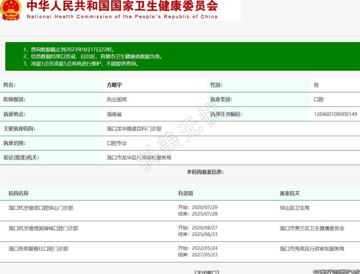 機(jī)構(gòu)名稱:海口杭牙維信國瑞城口腔門診部