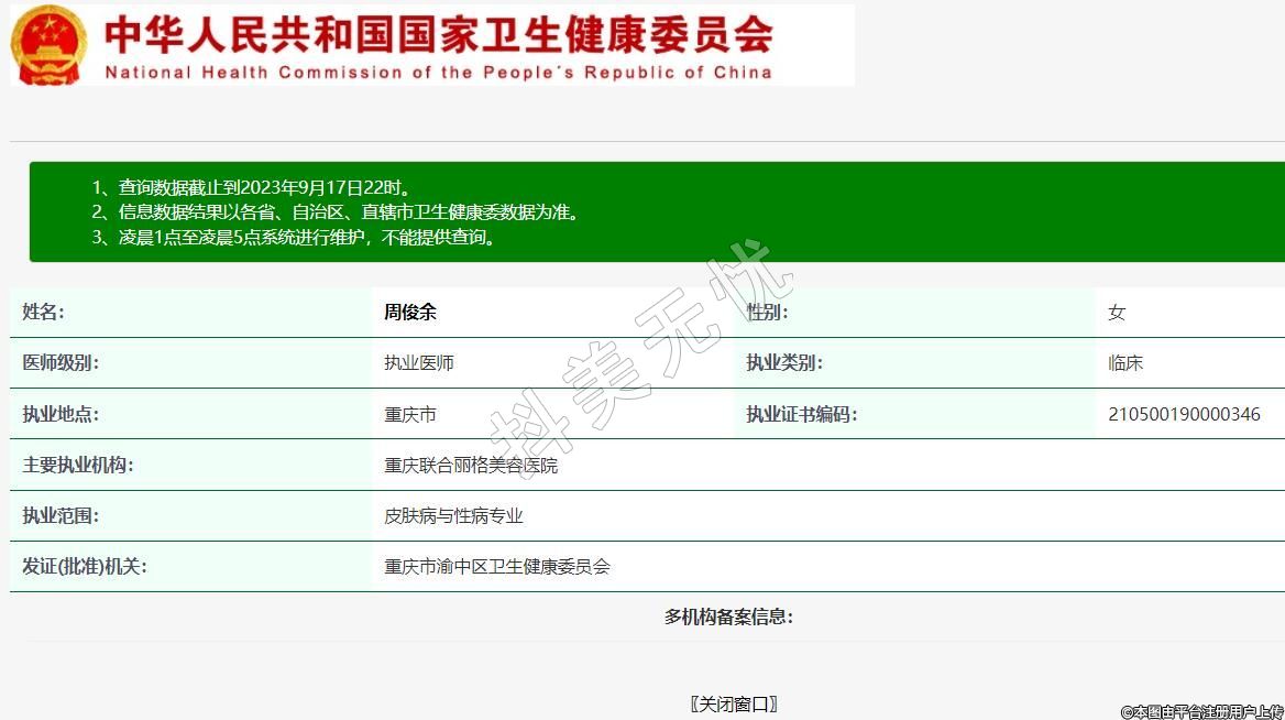 發(fā)證(批準)機關:重慶市渝中區(qū)衛(wèi)生健康委員會
