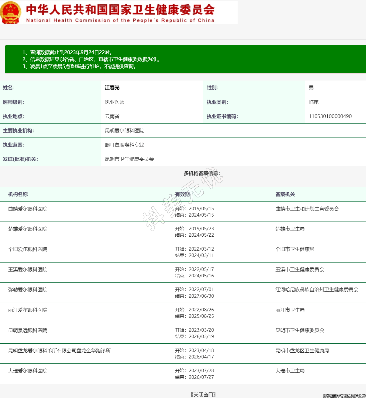 主要執(zhí)業(yè)機(jī)構(gòu):昆明愛爾眼科醫(yī)院