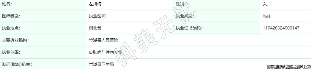 執(zhí)業(yè)范圍:皮膚病與性病專業(yè)