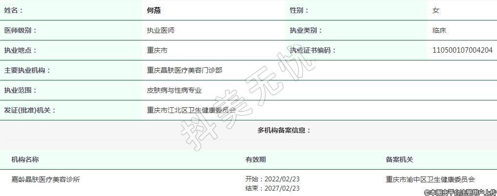 主要執(zhí)業(yè)機構(gòu):重慶晶膚醫(yī)療美容門診部
