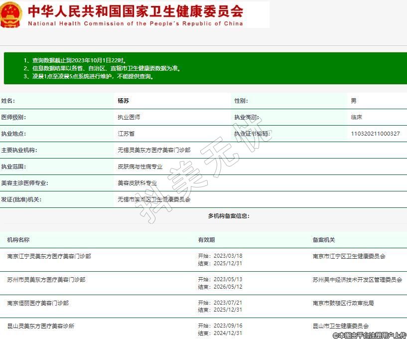 主要執(zhí)業(yè)機(jī)構(gòu):無錫靈美東方醫(yī)療美容門診部