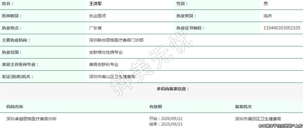 主要執(zhí)業(yè)機構:深圳聯(lián)合麗格醫(yī)療美容門診部