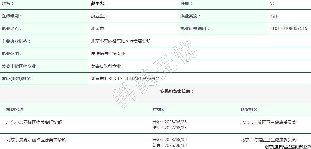 北京小忠麗格醫(yī)療美容執(zhí)業(yè)醫(yī)生