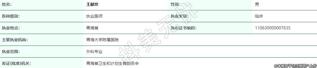 執(zhí)業(yè)地點:青海省