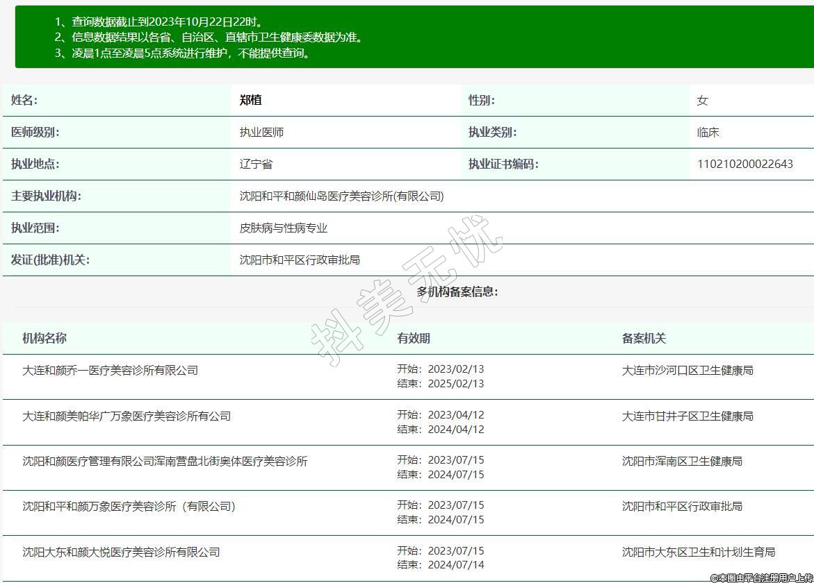 主要執(zhí)業(yè)機構(gòu):沈陽和平和顏仙島醫(yī)療美容診所(有限公司)