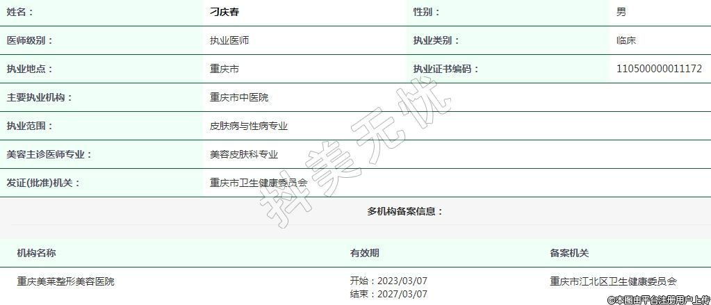 重慶美萊整形美容執(zhí)業(yè)醫(yī)師 -