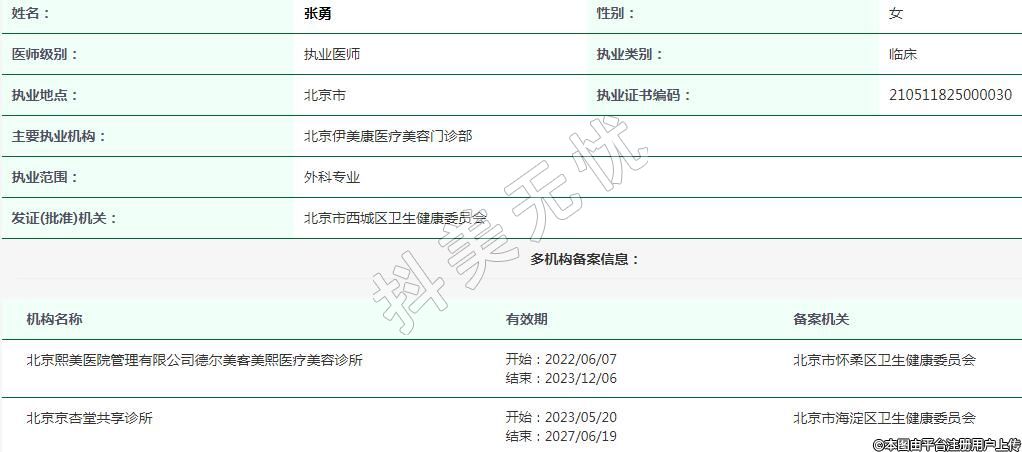 北京伊美康醫(yī)療美容執(zhí)業(yè)醫(yī)生