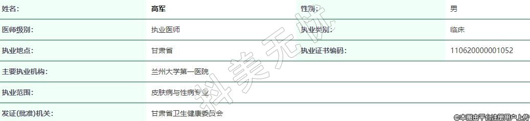執(zhí)業(yè)范圍:皮膚病與性病專業(yè)