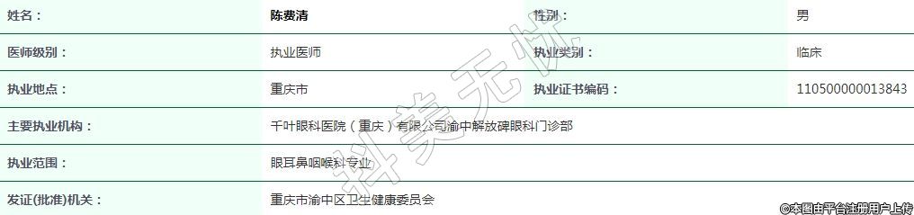 重慶千葉眼科執(zhí)業(yè)醫(yī)師