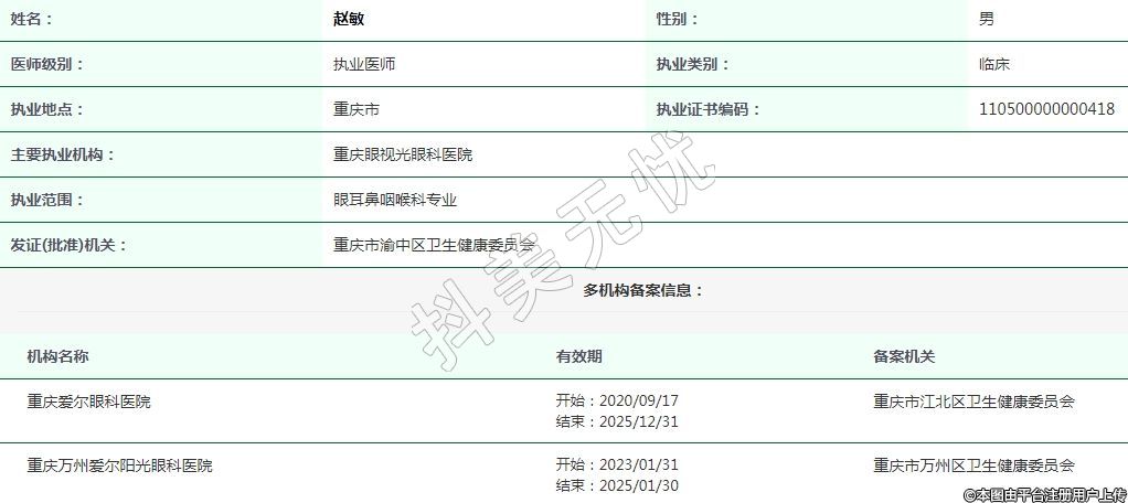 重慶愛爾眼科執(zhí)業(yè)醫(yī)師