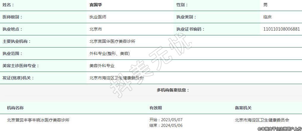 北京宮國華醫(yī)療美容執(zhí)業(yè)醫(yī)生