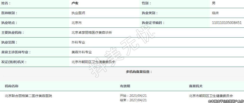 主要執(zhí)業(yè)機(jī)構(gòu):北京卓彥麗格醫(yī)療美容診所