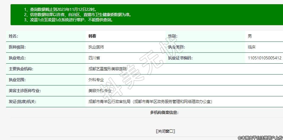 主要執(zhí)業(yè)機(jī)構(gòu):成都藝星整形美容醫(yī)院