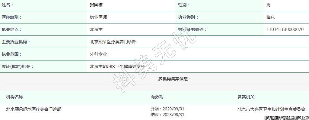 主要執(zhí)業(yè)機(jī)構(gòu):北京熙朵醫(yī)療美容門(mén)診部