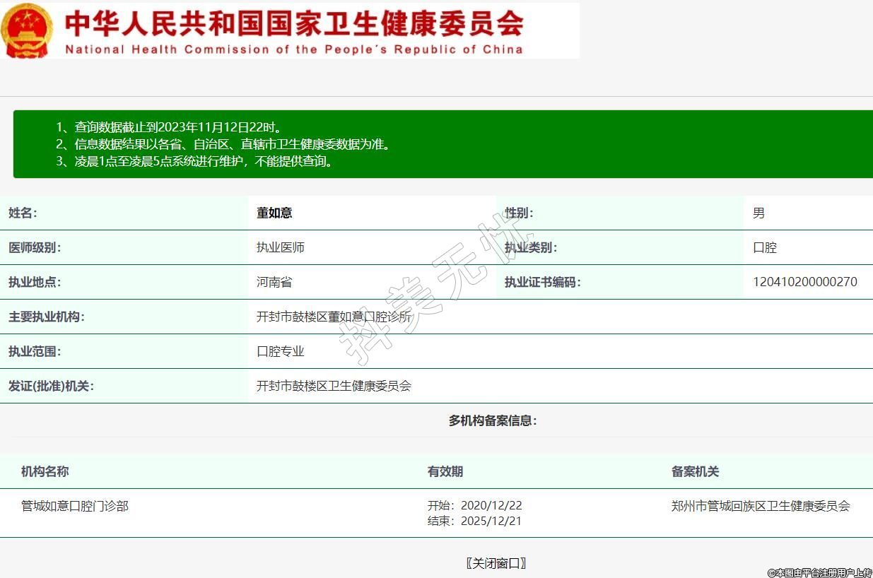 主要執(zhí)業(yè)機(jī)構(gòu):開封市鼓樓區(qū)董如意口腔診所