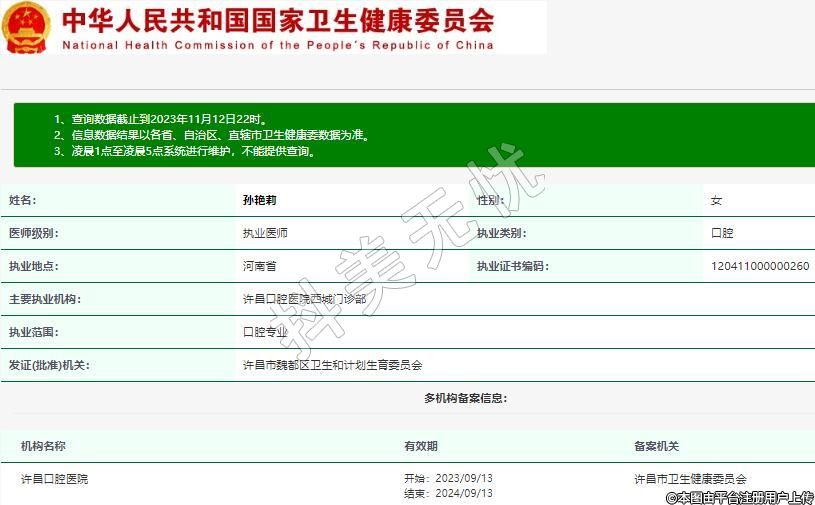 主要執(zhí)業(yè)機(jī)構(gòu):許昌口腔醫(yī)院西城門診部