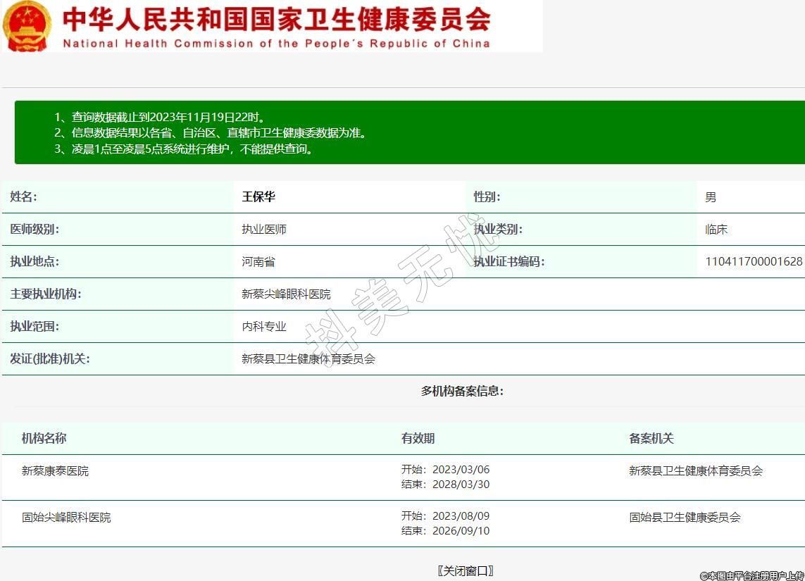 主要執(zhí)業(yè)機構(gòu):新蔡尖峰眼科醫(yī)院