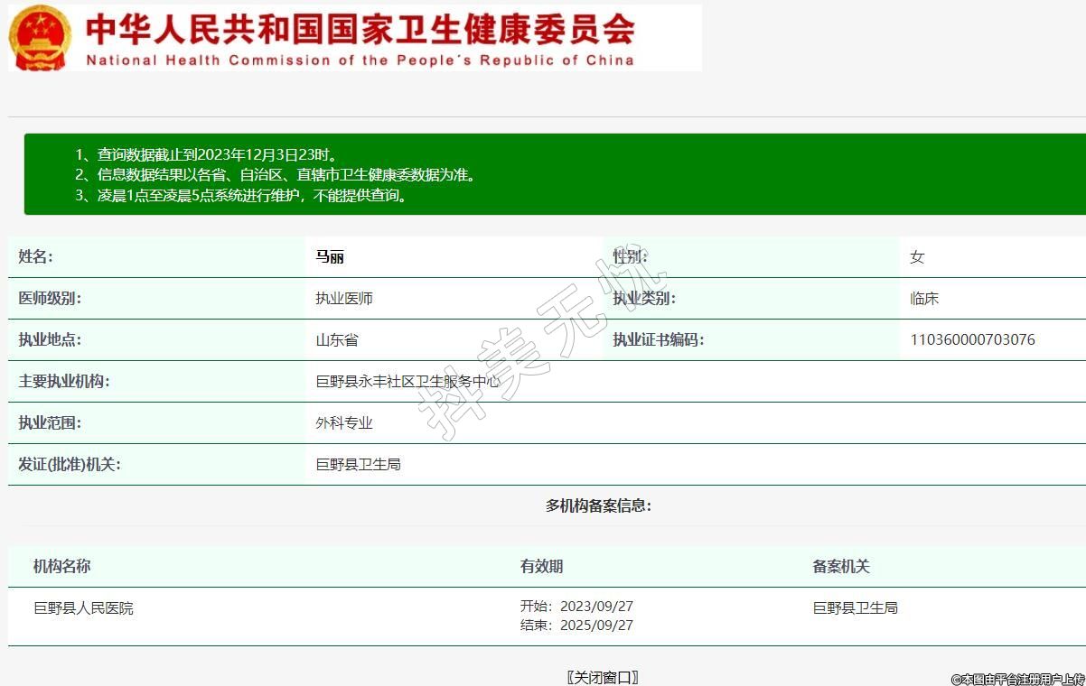 發(fā)證(批準)機關:巨野縣衛(wèi)生局