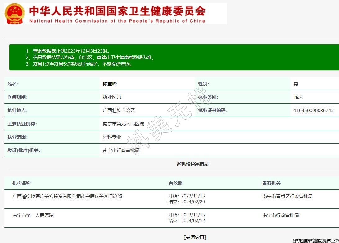 機構名稱:廣西潘多拉醫(yī)療美容投資有限公司南寧醫(yī)療美容門診部