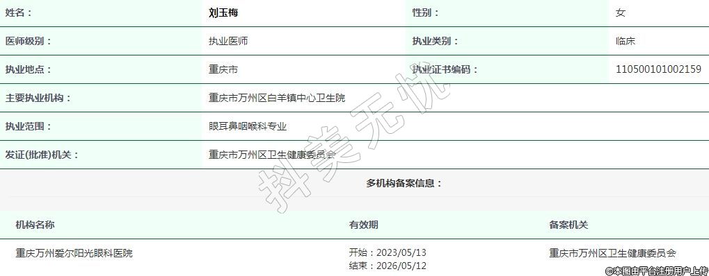 重慶萬州愛爾陽光眼科執(zhí)業(yè)醫(yī)師 -