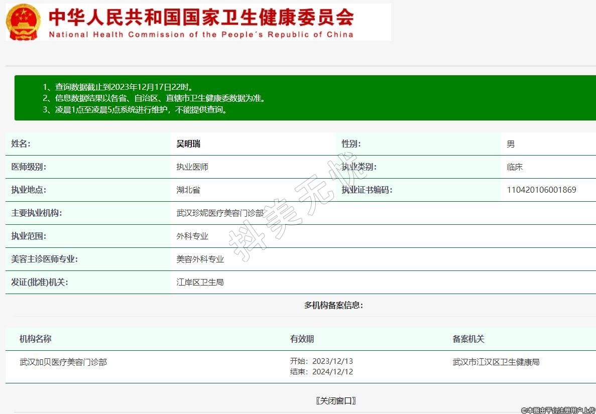 主要執(zhí)業(yè)機(jī)構(gòu):武漢珍妮醫(yī)療美容門診部