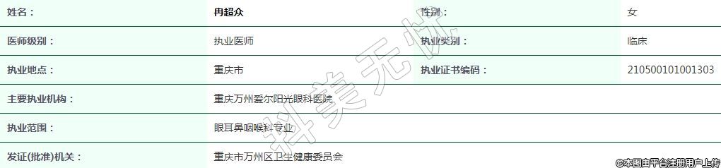 重慶萬州愛爾陽光眼科執(zhí)業(yè)醫(yī)師