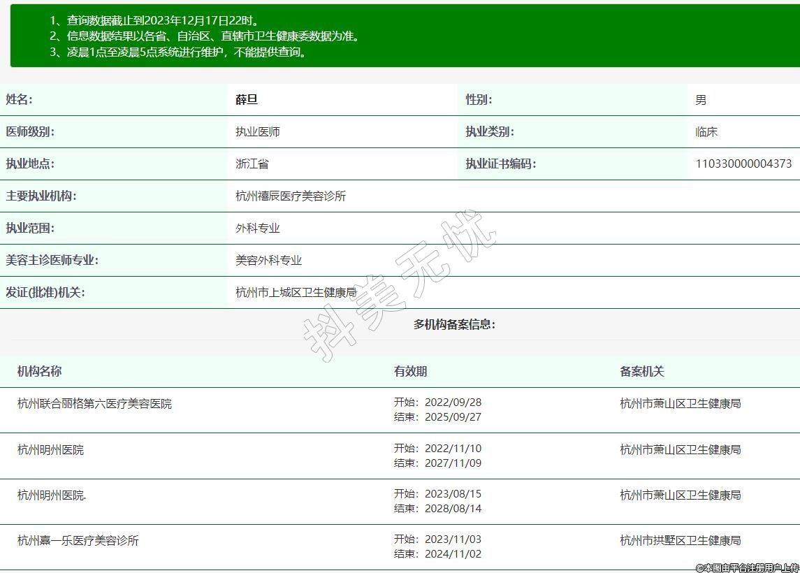 主要執(zhí)業(yè)機(jī)構(gòu):杭州禧辰醫(yī)療美容診所