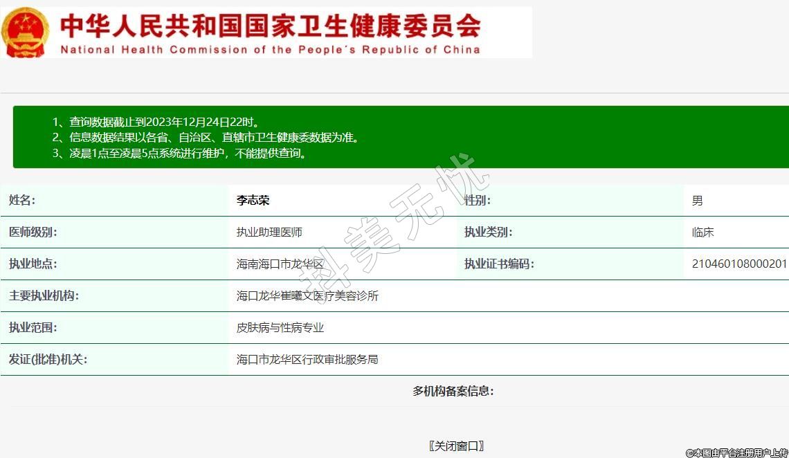 主要執(zhí)業(yè)機(jī)構(gòu):海口龍華崔曦文醫(yī)療美容診所