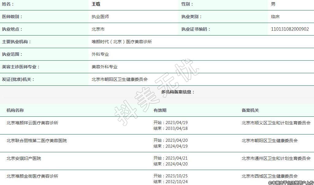 北京唯顏時(shí)代醫(yī)療美容執(zhí)業(yè)醫(yī)生