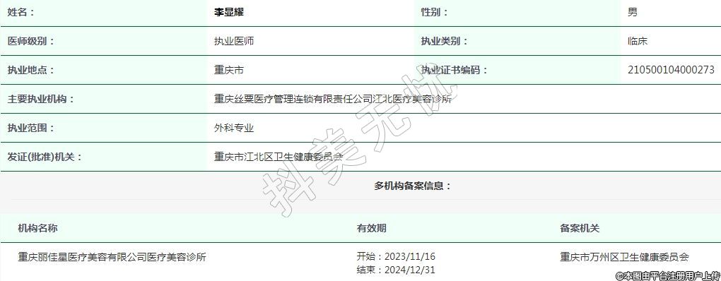 重慶麗佳星醫(yī)療美容執(zhí)業(yè)醫(yī)師 -