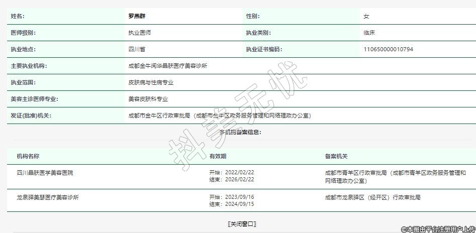 主要執(zhí)業(yè)機構(gòu):成都金牛閱華晶膚醫(yī)療美容診所