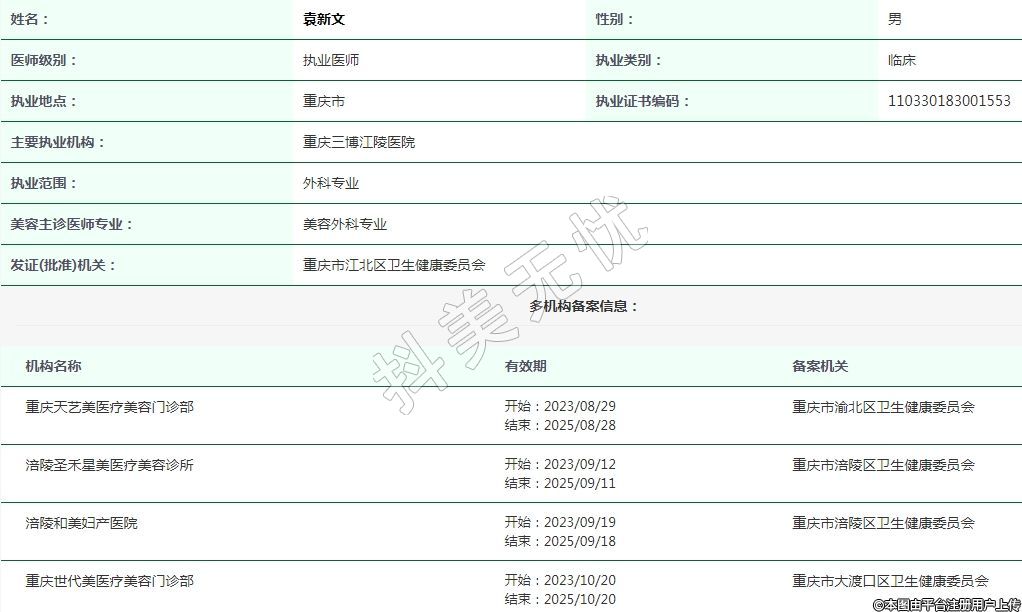 重慶天藝美醫(yī)療美容執(zhí)業(yè)醫(yī)師