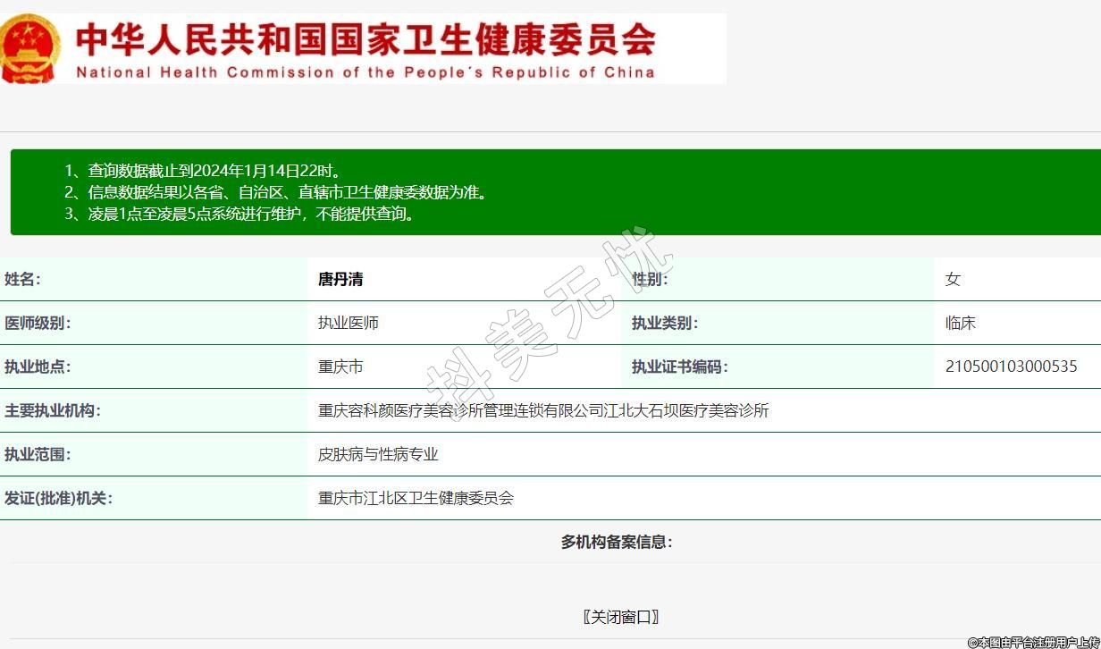 主要執(zhí)業(yè)機(jī)構(gòu):重慶容科顏醫(yī)療美容診所管理連鎖有限公司江北大石壩醫(yī)療美容診所