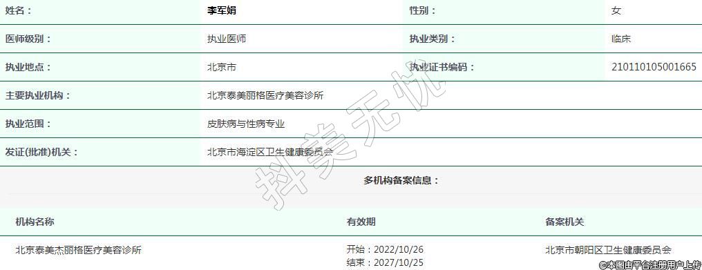 主要執(zhí)業(yè)機構(gòu):北京泰美麗格醫(yī)療美容診所