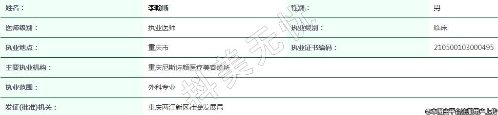 重慶尼斯詩顏醫(yī)療美容執(zhí)業(yè)醫(yī)師