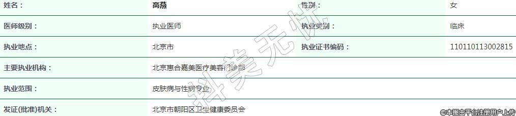 北京惠合嘉美醫(yī)療美容執(zhí)業(yè)醫(yī)生
