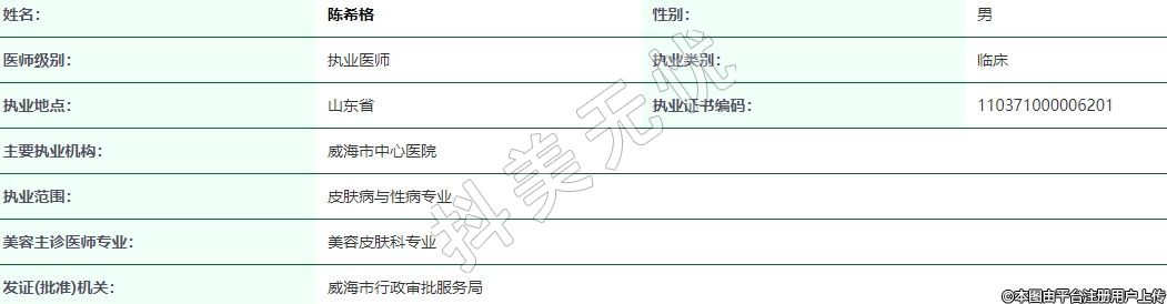 執(zhí)業(yè)范圍:皮膚病與性病專業(yè)