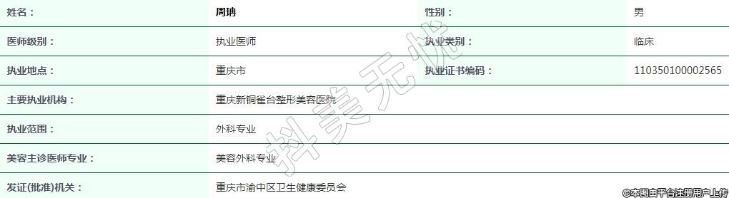 重慶新銅雀臺(tái)整形美容執(zhí)業(yè)醫(yī)師