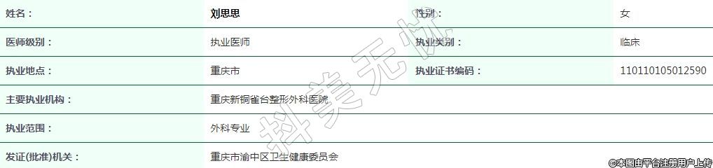 重慶新銅雀臺(tái)整形外科執(zhí)業(yè)醫(yī)師
