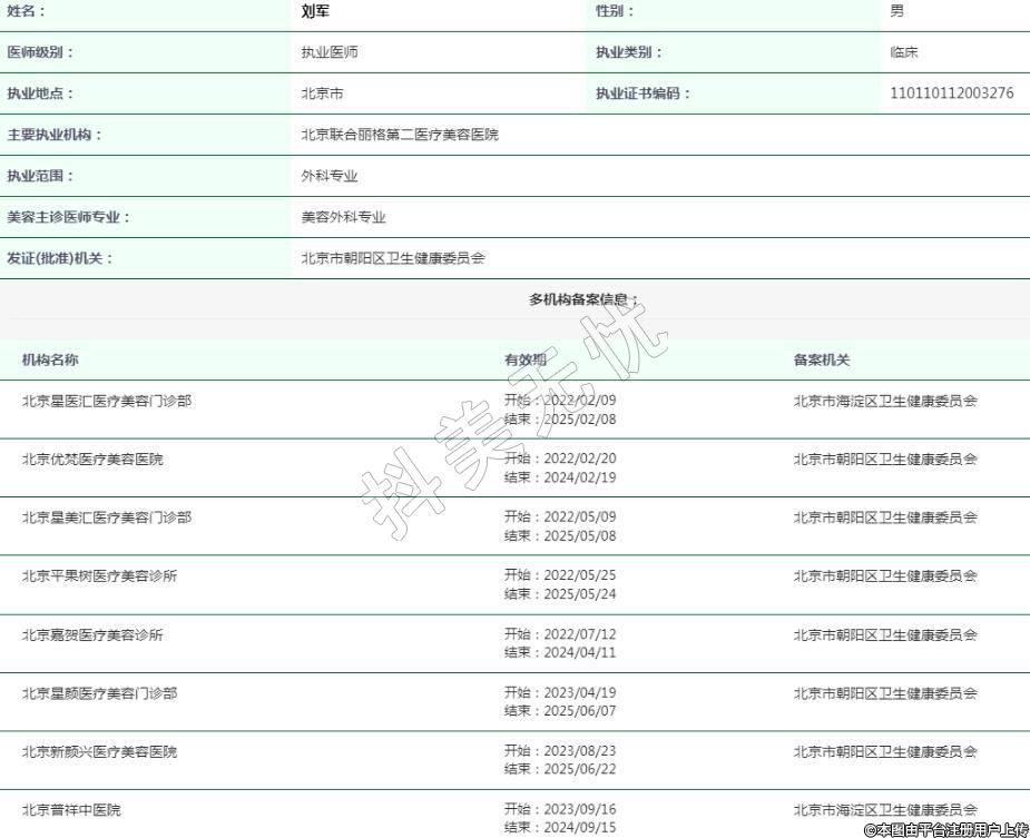 北京星醫(yī)匯醫(yī)療美容執(zhí)業(yè)醫(yī)生