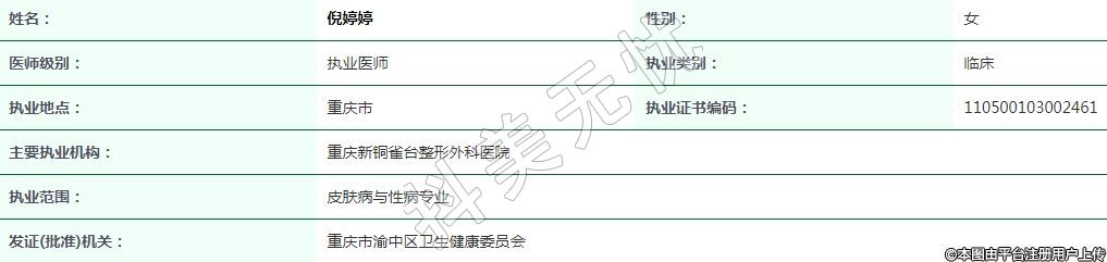 重慶新銅雀臺(tái)整形外科執(zhí)業(yè)醫(yī)師
