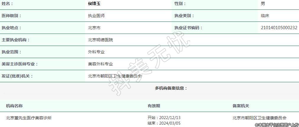 北京明德醫(yī)院醫(yī)療美容執(zhí)業(yè)醫(yī)生