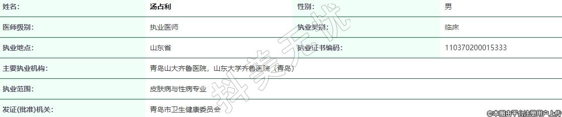 執(zhí)業(yè)范圍:皮膚病與性病專業(yè)