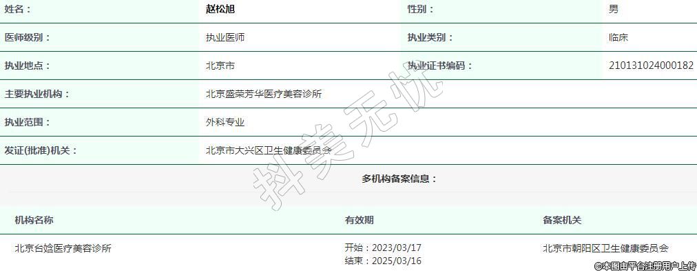 主要執(zhí)業(yè)機(jī)構(gòu):北京盛榮芳華醫(yī)療美容診所