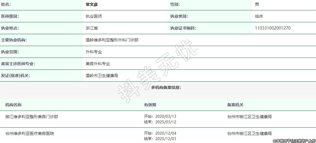 主要執(zhí)業(yè)機構(gòu):溫嶺維多利亞整形外科門診部