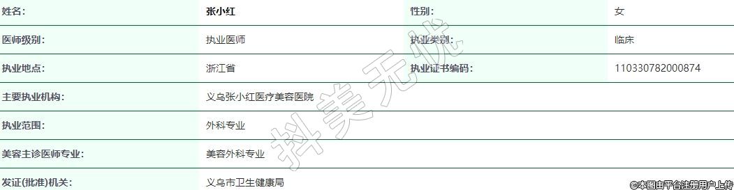 主要執(zhí)業(yè)機構(gòu):義烏張小紅醫(yī)療美容醫(yī)院