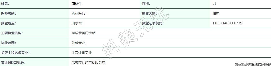 主要執(zhí)業(yè)機(jī)構(gòu):榮成伊美門診部