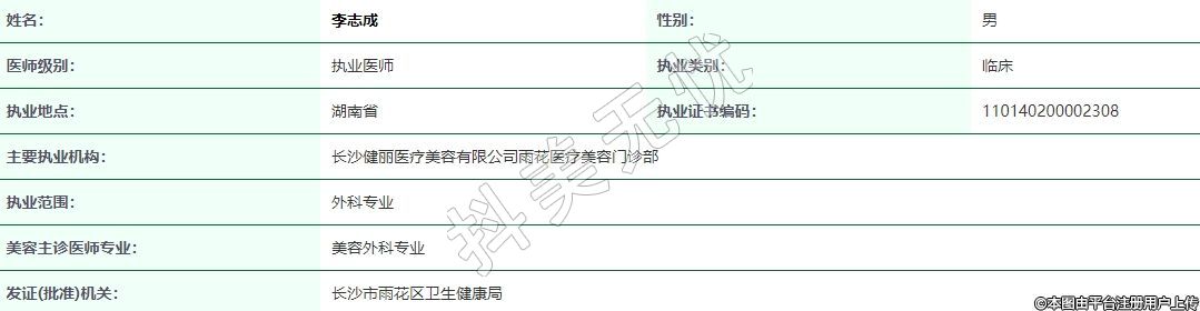 主要執(zhí)業(yè)機(jī)構(gòu):長沙健麗醫(yī)療美容有限公司雨花醫(yī)療美容門診部