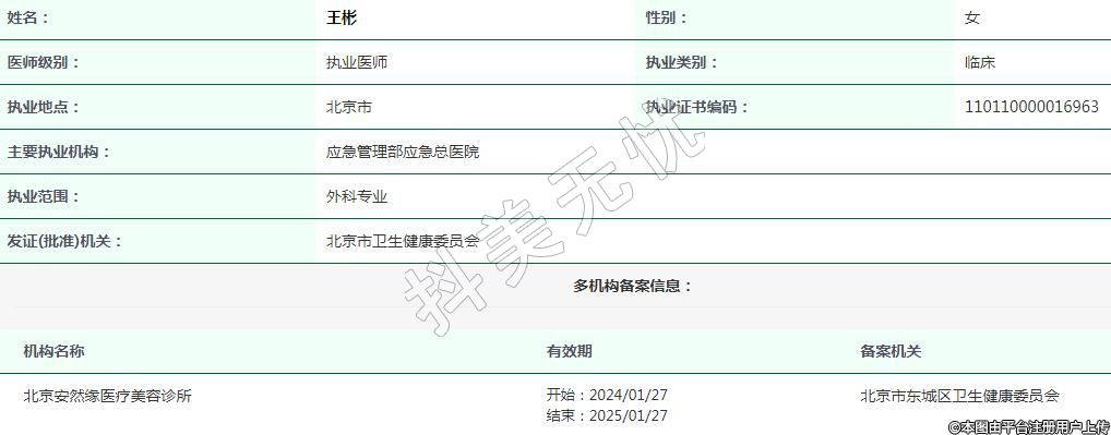 北京安然緣醫(yī)療美容執(zhí)業(yè)醫(yī)生